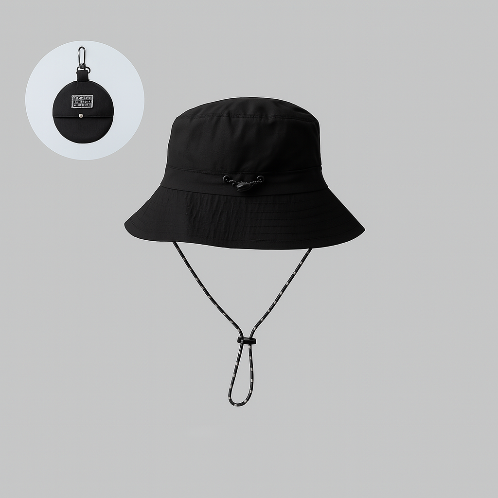 Black Packable Outdoor Bucket Hat