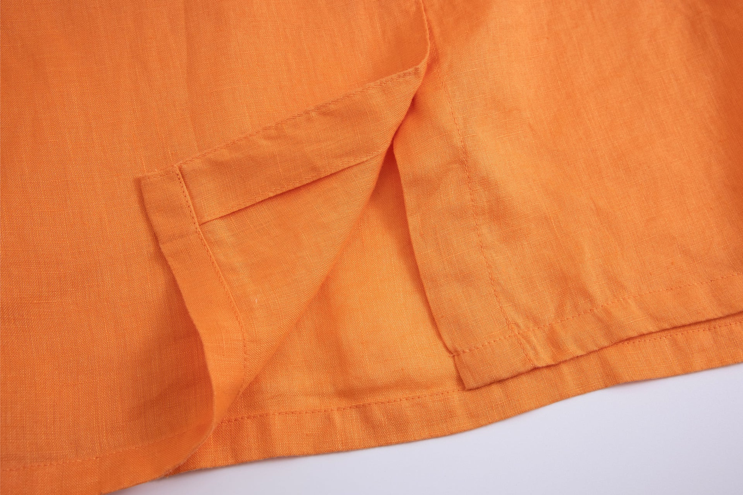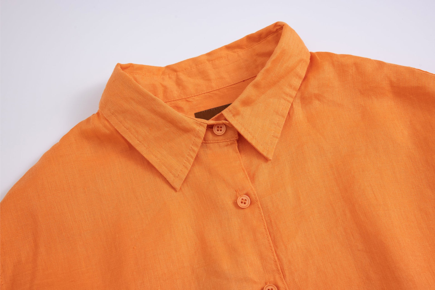 Make a bold impression with this orange linen shirt. Its vibrant hue and airy fabric make it ideal for casual outings and creative styling. A confident choice for those who love to stand out.